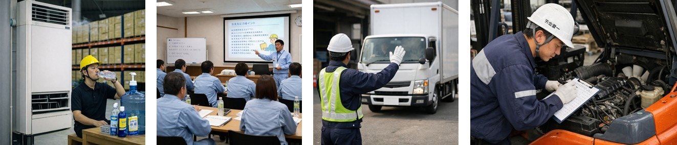 具体的には、夏季のリスクを見据えた熱中症対策の実施に加え、フォークリフトの点検講習の実施および資格取得の推進を行っています。さらに、庫内作業ならびに配送業務に関する安全講習会の開催も予定しており、現場での事故・災害の未然防止に向けた取り組みを強化しています。